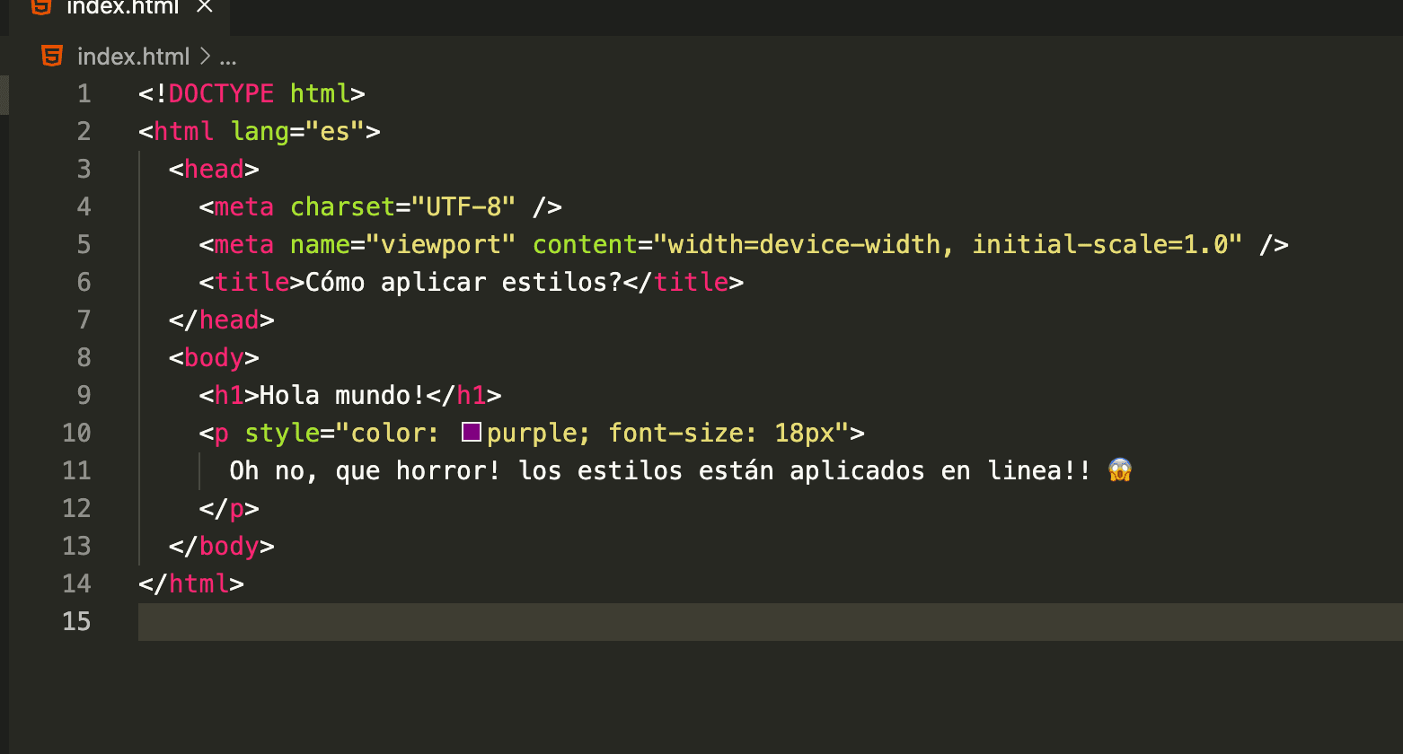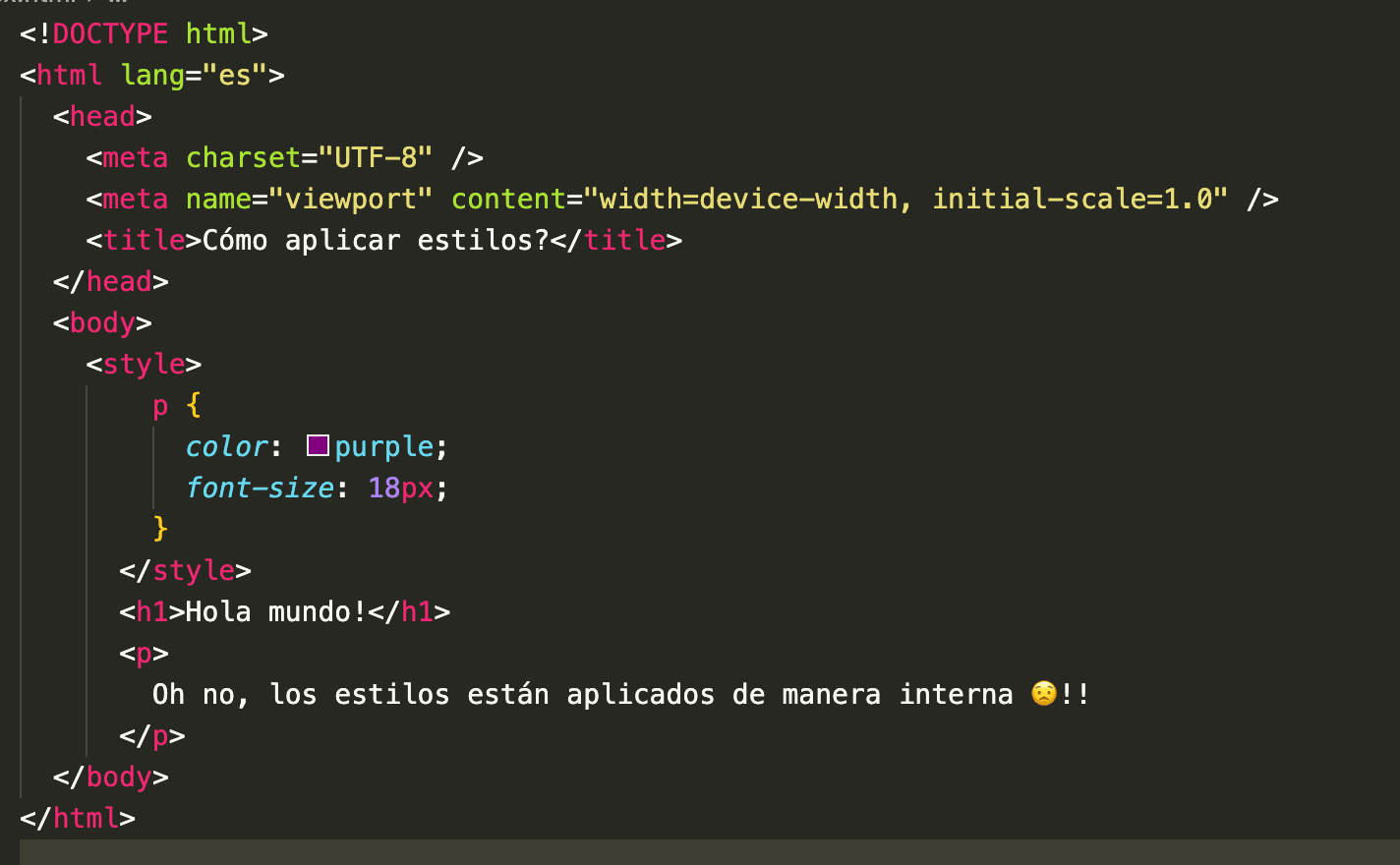 De nuevo, no es ni de cerca la convención en css, pero podemos aplicar estilos valiéndonos de la etiqueta <style>