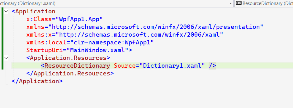 De igual manera, en WPF todo está contenido dentro de una aplicación, y sí, también podemos establecer los recursos allí. Esto es útil para reutilizar estilos y mantener consistencia en toda la aplicación. A este punto ya podemos imaginar cómo se vería el código para lograrlo. La última variación de este método la haremos a este nivel también así que saltemos el ejemplo y vayamos directo a ello.